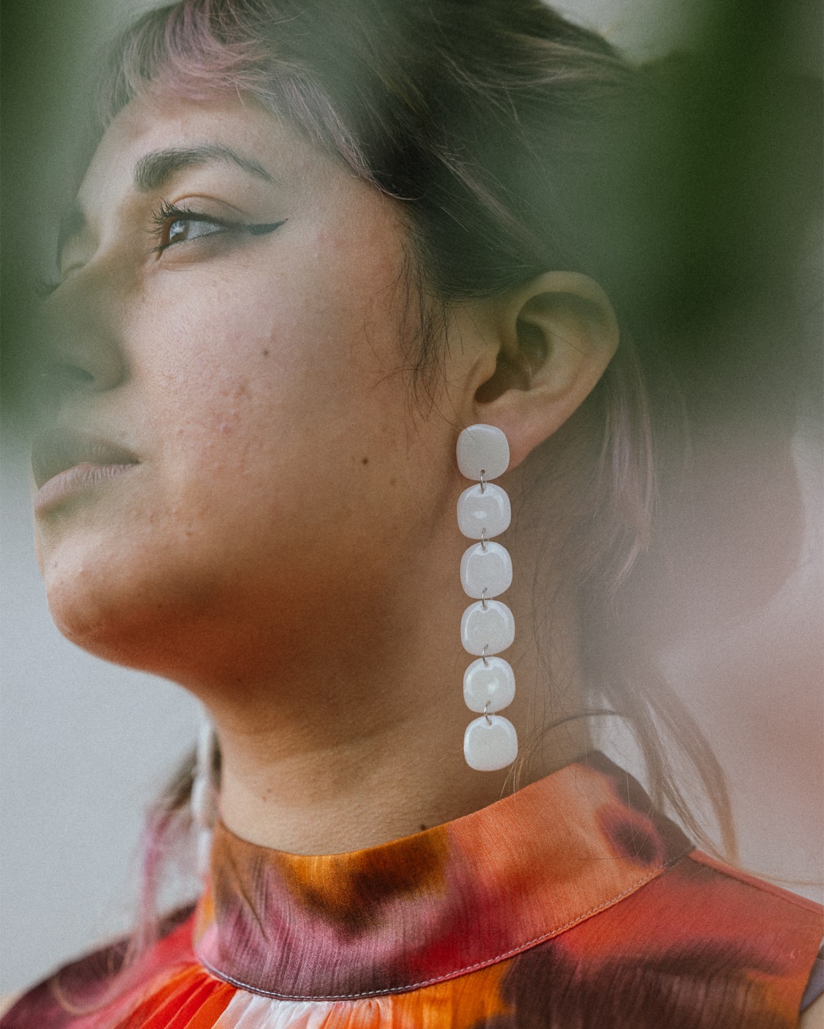 Orecchini pendenti leggeri e dal design minimalista, realizzati interamente a mano in argilla polimerica. Perni in acciaio inox nichel free, adatti a chi ha orecchie sensibili.