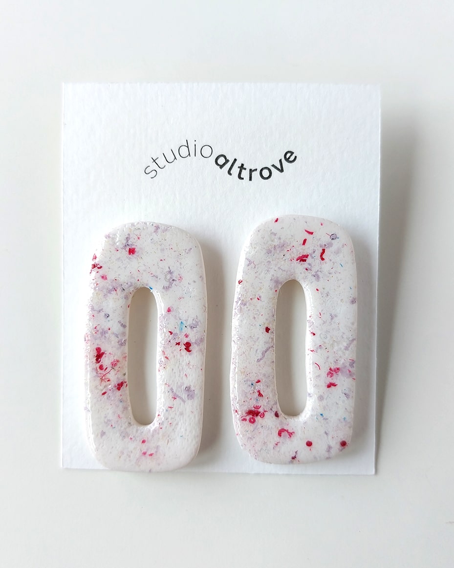 Materiali: argilla polimerica, cerchi acciaio inox placcati oro (nichel free)