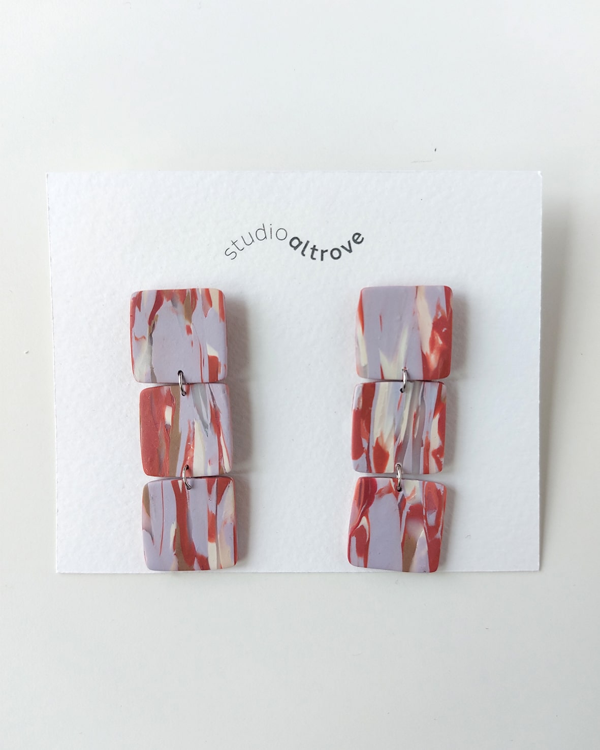 Materiali: argilla polimerica, cerchi acciaio inox placcati oro (nichel free)