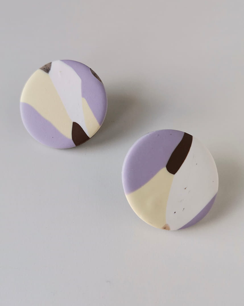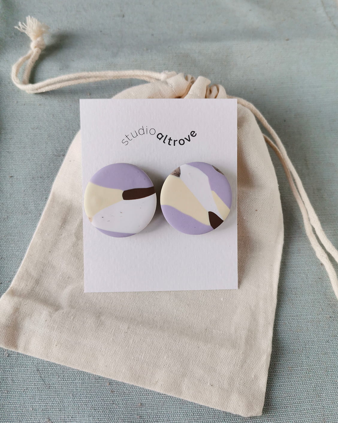 Materiali: argilla polimerica, cerchi acciaio inox placcati oro (nichel free)