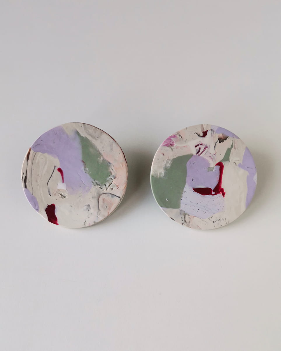 Materiali: argilla polimerica, cerchi acciaio inox placcati oro (nichel free)