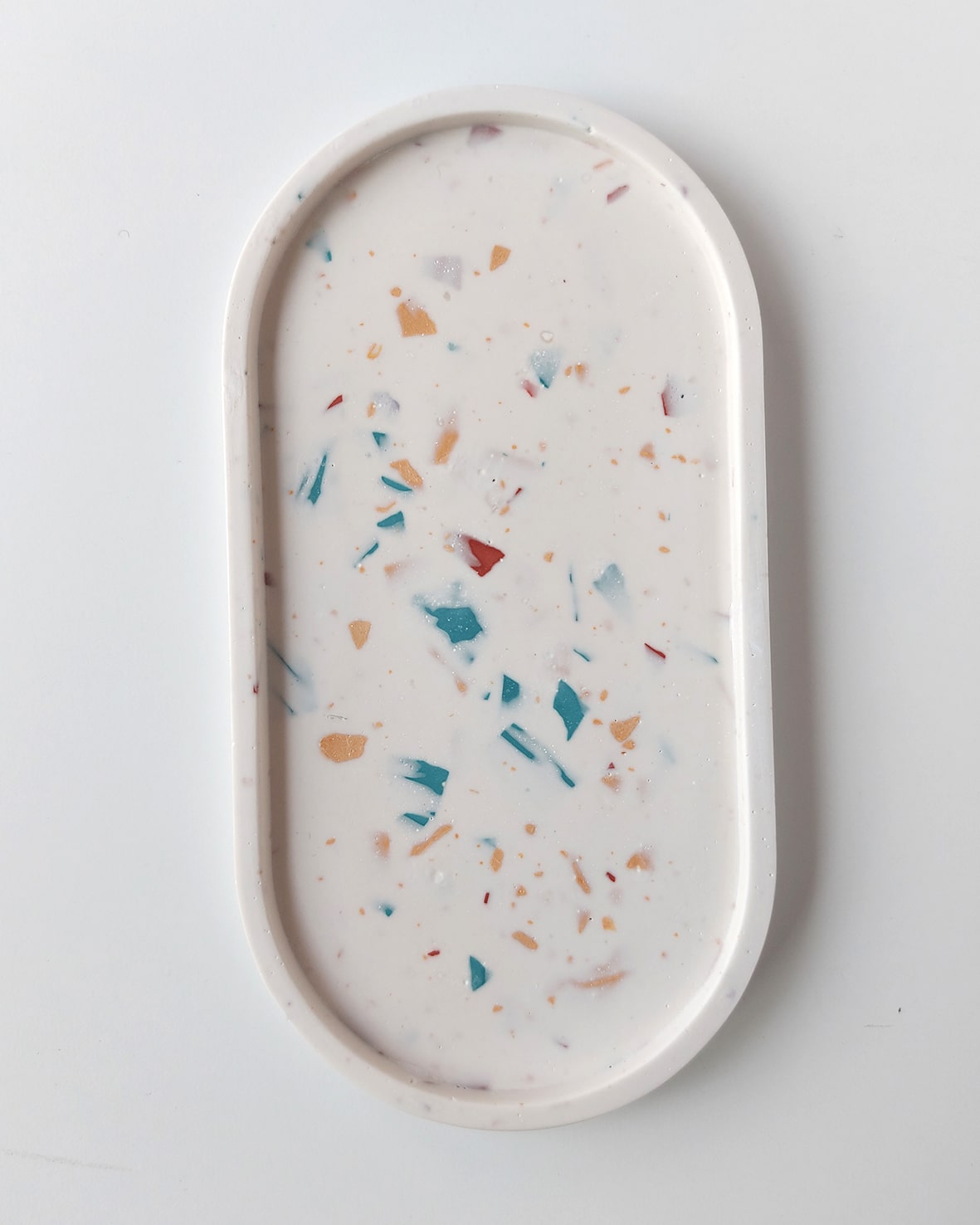 Piattino porta gioielli realizzato a mano con tecnica terrazzo da Jes Home Decor.